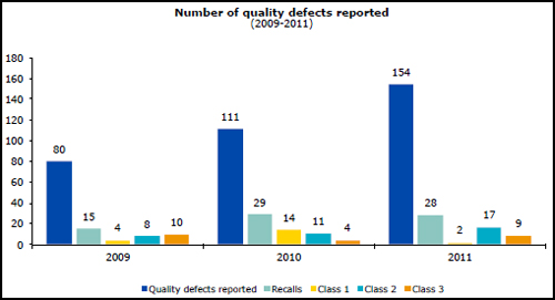 Bemerkenswert ist die Tatsache, dass die Qualitätsmängel im Vergleich zum Vorjahr um 38% zugenommen haben. Die EMA hat ein Projekt gestartet, um die Ursachen für die Qualitätsmängel zu identifizieren.
