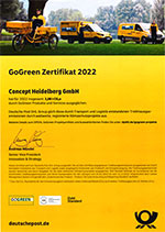CONCEPT HEIDELBERG erhält seit Jahren regelmäßig das von der Deutschen Post ausgestellte Zertifikat für seine Beteiligung am am Umweltschutzprogramm GOGREEN - so auch dieses Jahr für 2022.