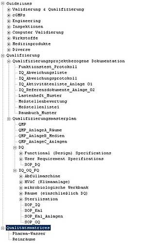 - IQ- und OQ-Pläne für z.B. Lüftungsanlagen und Räumlichkeiten