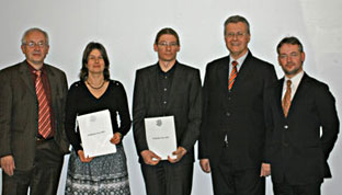 Die Juroren des Wallhäußer-Preises, Dr. Wolfgang Schumacher, F. Hoffmann-La Roche AG, und Rudolf Völler, Regierungspräsidium Darmstadt, zeichneten in diesem Jahr zwei Preisträger aus, die sich den Preis teilen: